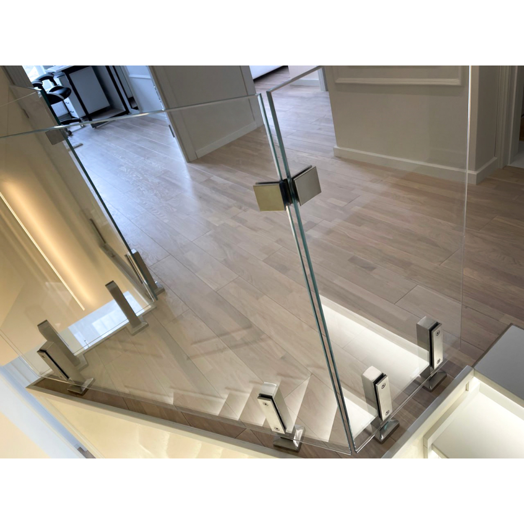 The price is for the glass fence on the racks, як на фото, враховуючи 2 сходових марші діагоналлю по 3500 мм (висота 1000 мм від підлоги), з прозорого загартованого скла 10 мм непрямокутної форми.