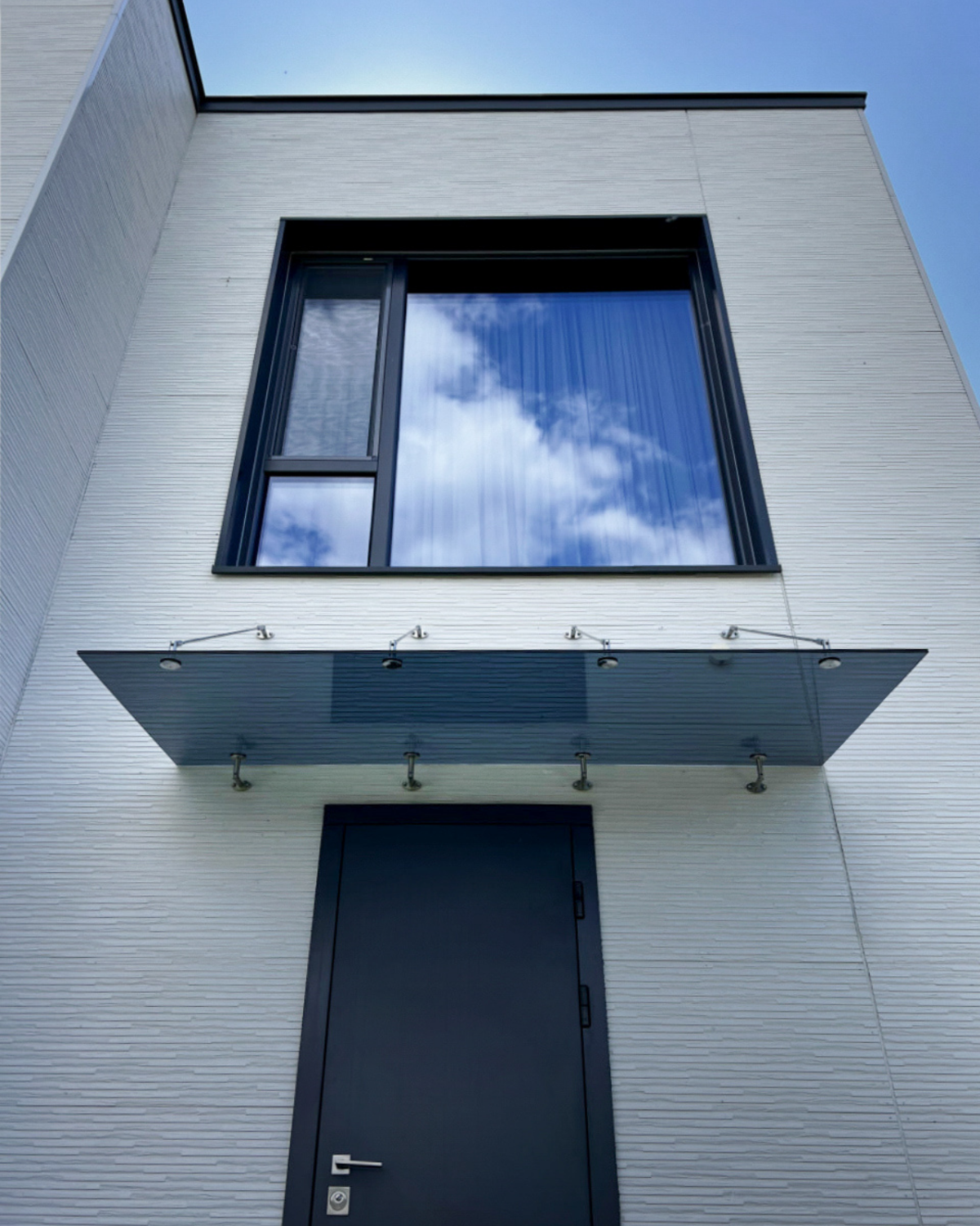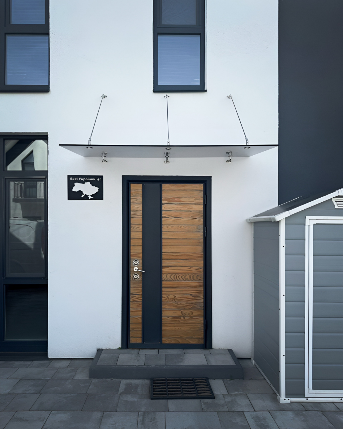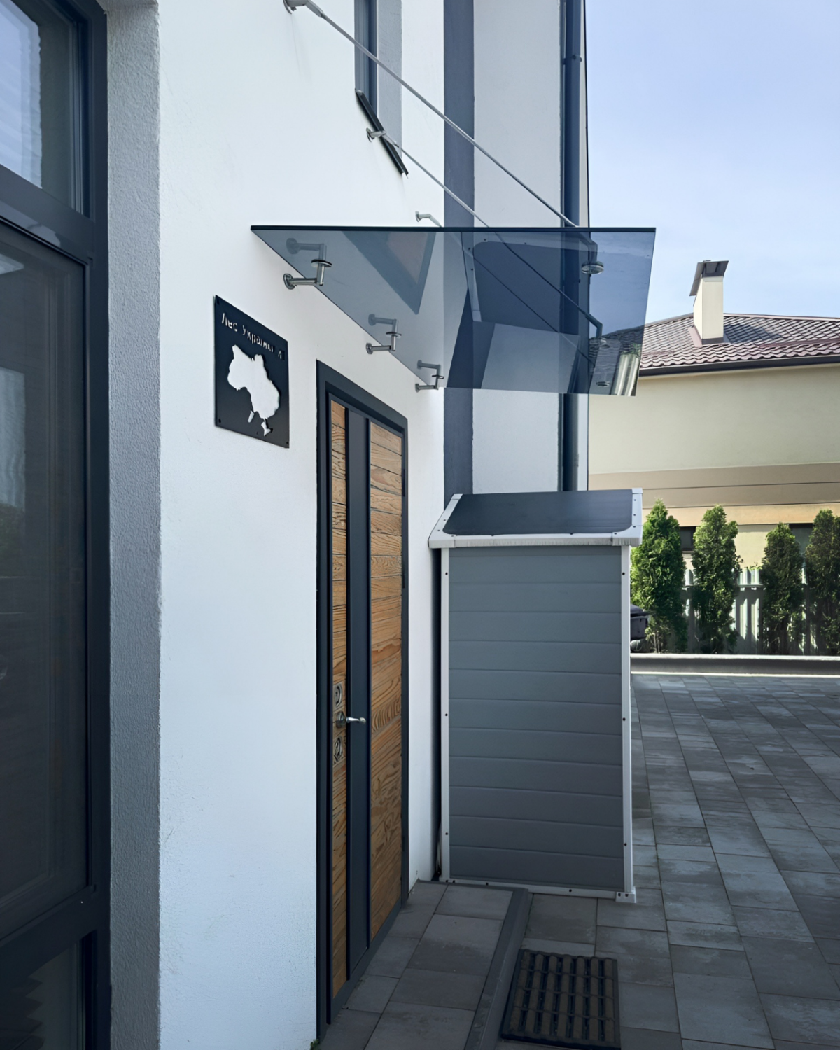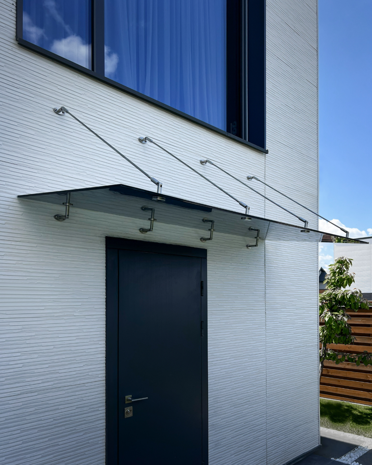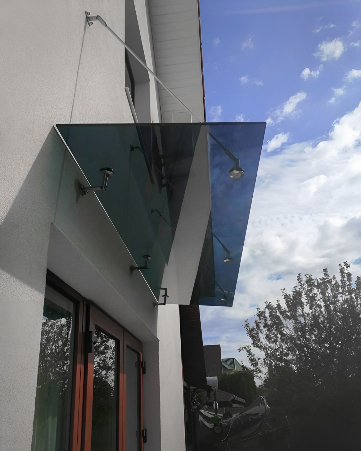 Навіси над вхідними дверима – це елемент, який повинен бути виготовлений з міцних матеріалів, тому ми використовуємо спеціальне загартоване скло та багатошарове скло триплекс.