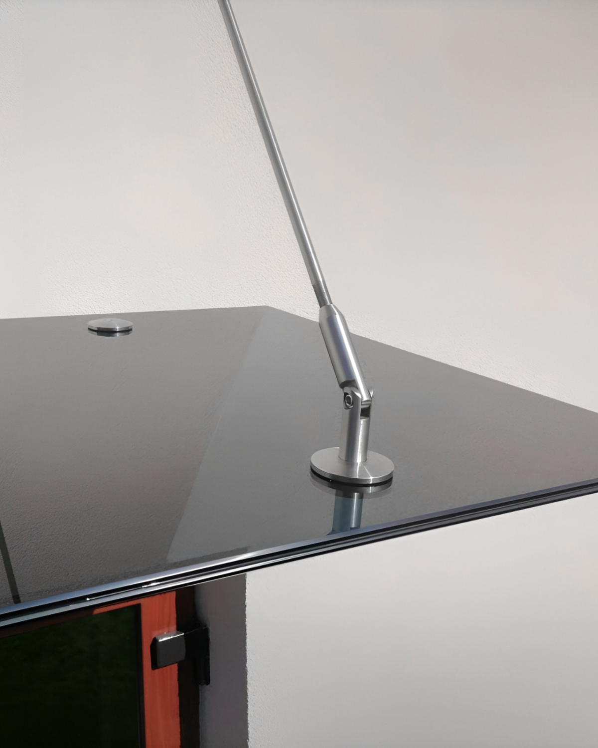 Комплектуючі для скляних навісів виготовлені з нержавіючої сталі AISI 304, вони є міцними та надійними. Кріплення для скляних навісів використовуються в агресивному середовищі та будуть довгий час надійно виконувати свої функції.