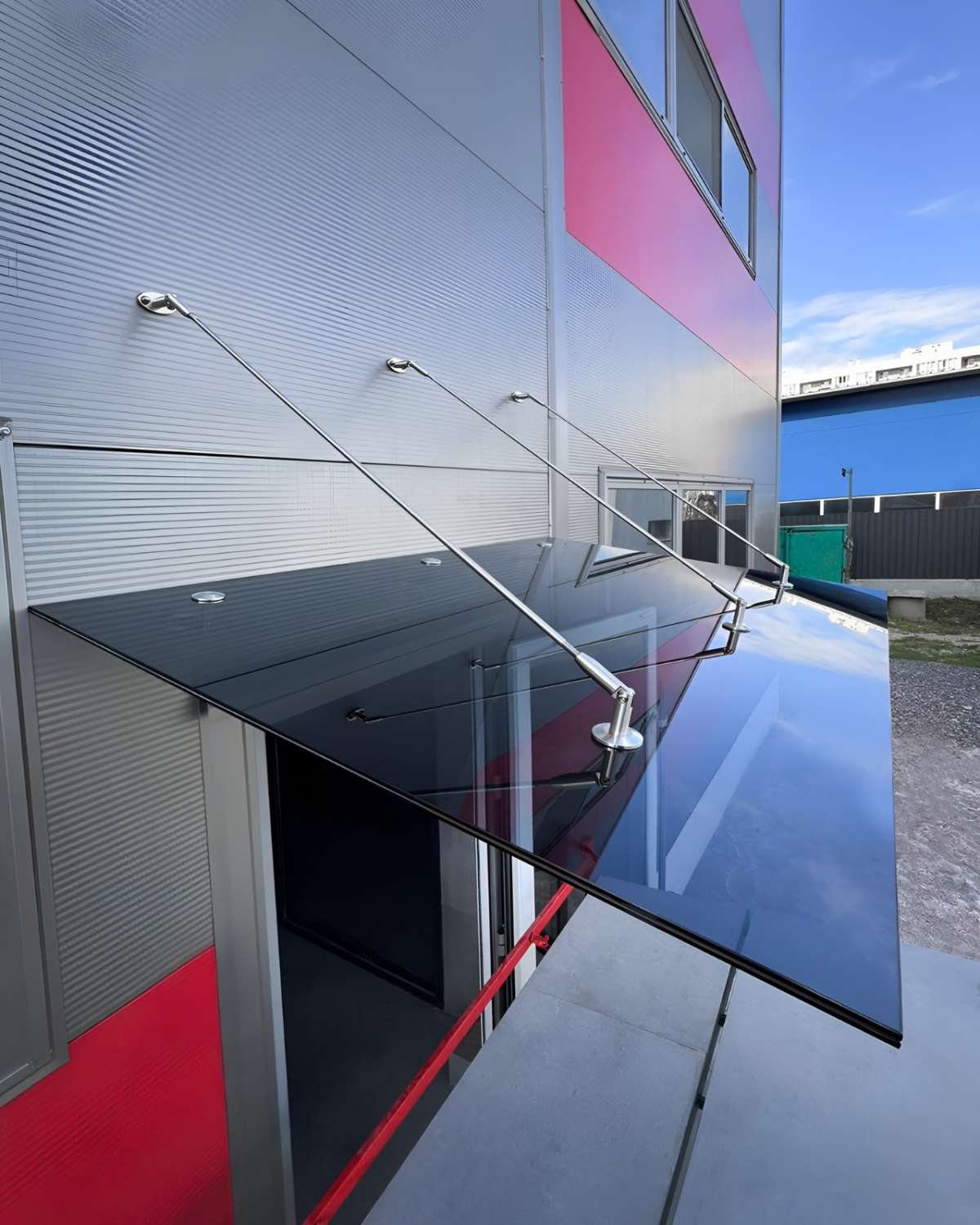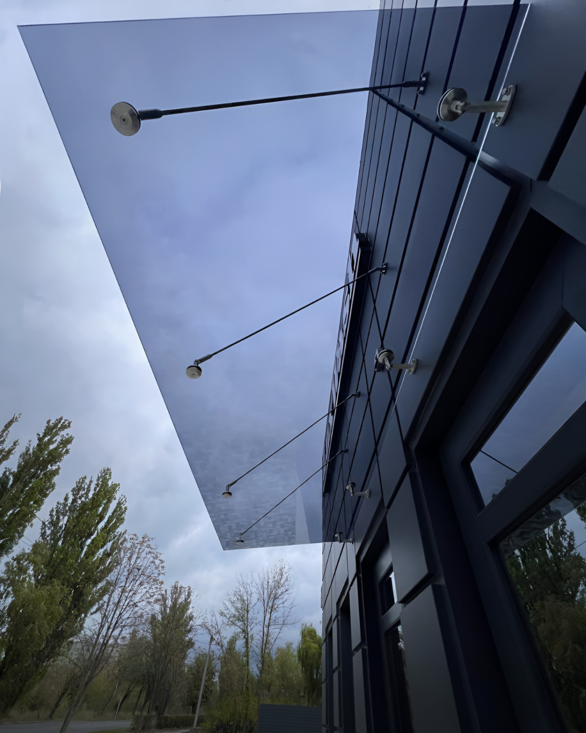 Скляні навіси мають високу стійкість до механічних пошкоджень, спричинених градом, морозом або частим впливом сонячних променів і високої температури в літні місяці.