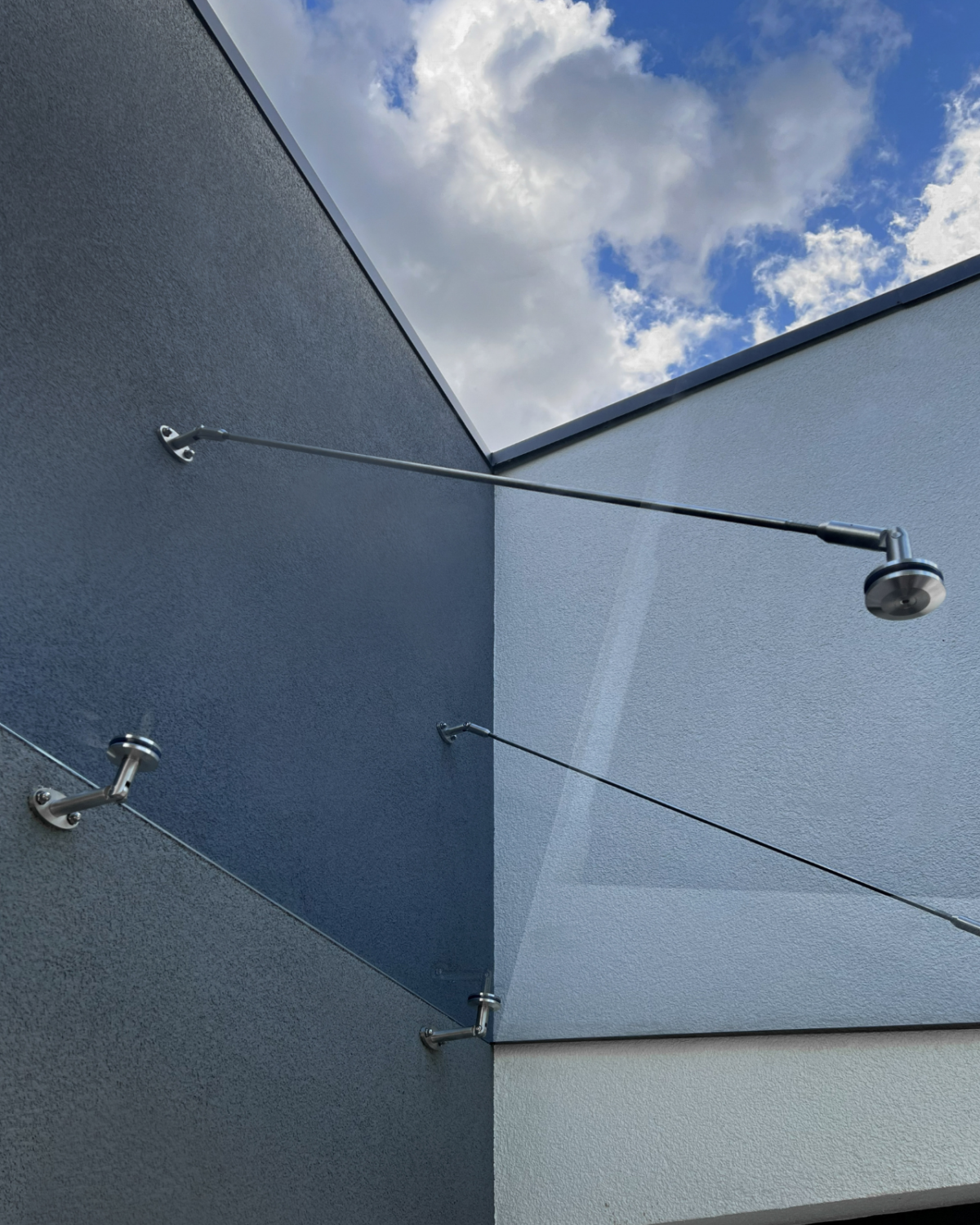 Скляні навіси на вантах дуже популярні. Причиною такого явища є надзвичайний естетичний вигляд скла, який надає конструкції даху вишуканості.