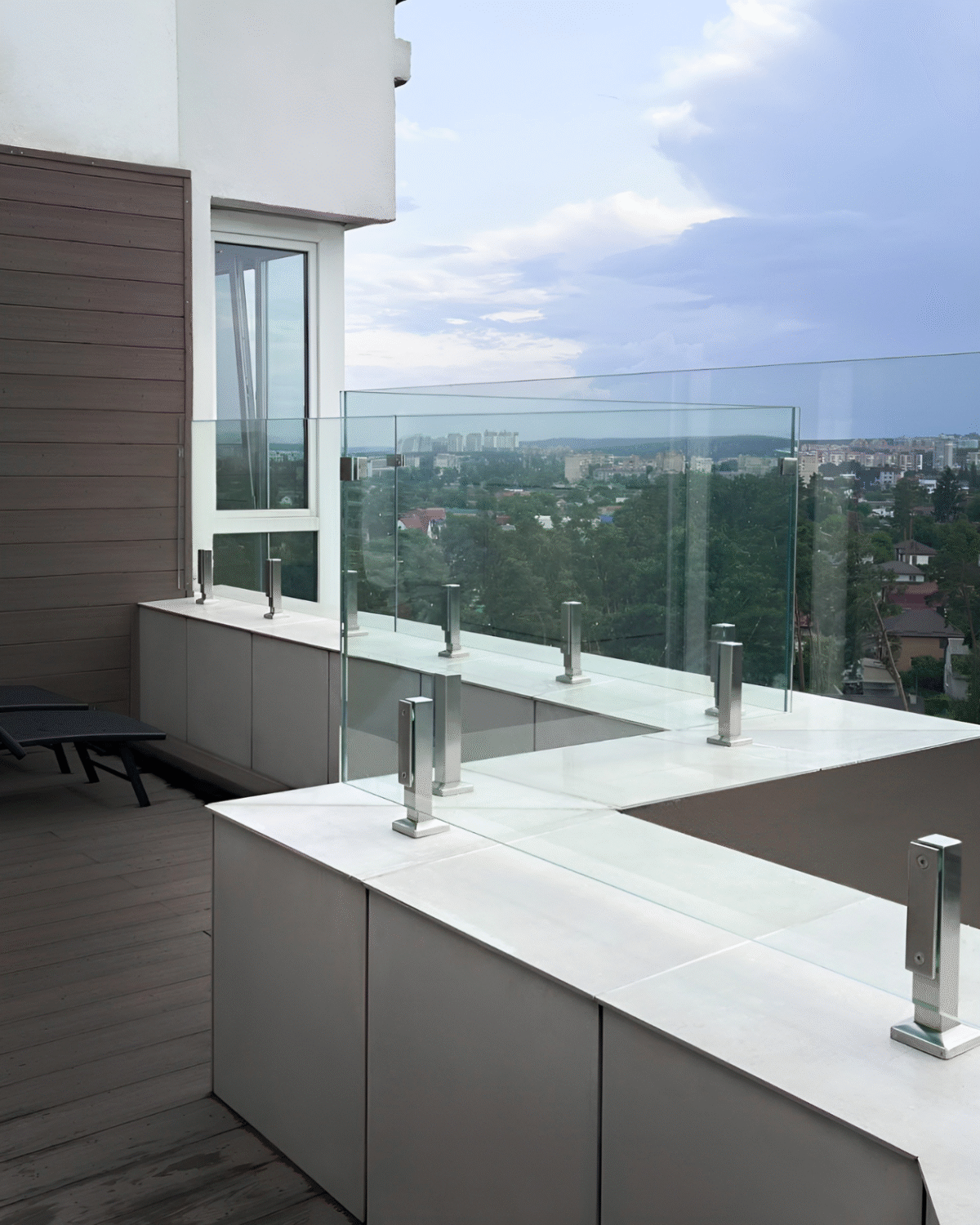 Поручні та скляні огорожі на коротких стійках монтуються на міцну підготовлену поверхню та підходять як для внутрішнього, так і для зовнішнього використання.