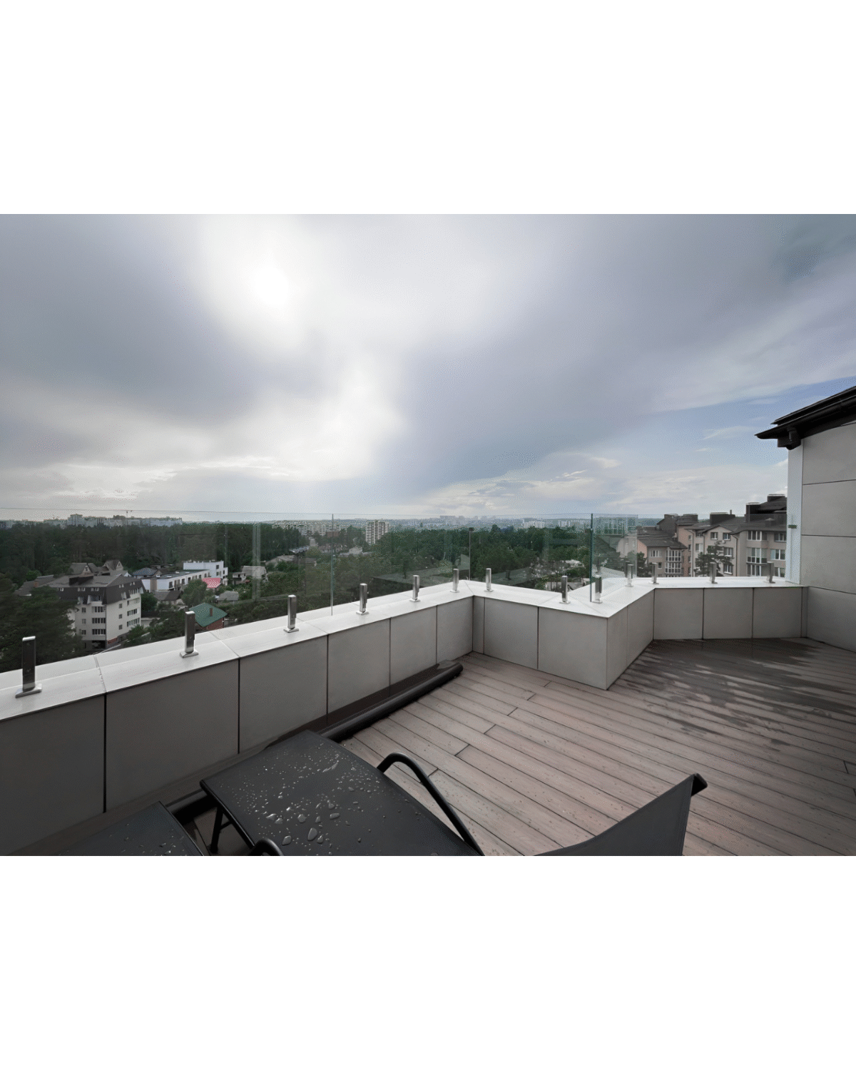 Міцні та надійні короткі стійки для огорож зі скла витримують великі навантаження, але виглядають стильно, легко та мінімалістично.